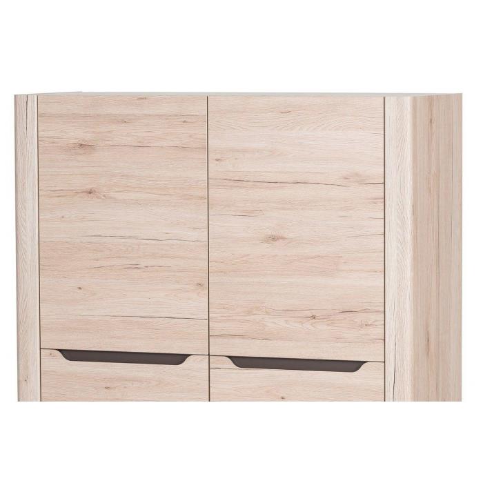 Komoda Desjo to mebel idealny do pokoju dziennego lub salonu. Mebel wpasuje się w wiele aranżacji w nowoczesnych wnętrzach jak również we wnętrzach klasycznych. Kolekcja Desjo wykonana została w kolorze dąb san remo, który imituje naturalny rysunek słojów. Aranżacje inspirowane drewnem nie tracą na popularności. Szafka posiada drzwiczki dzięki czemu ma łatwy dostęp do wnętrza oraz odpowiednią przestrzeń do przechowywania odzieży lub innych przedmiotów. Do kompletu można dokupić inne meble z kolekcji.