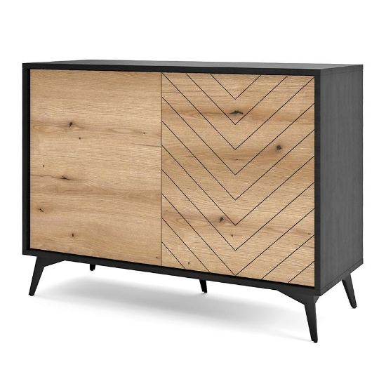 Ciemne drewnopodobne wybarwienie frontów w kolorze dąb evoke nadaje komodzie elegancji i luksusowego wyglądu, podkreślając jednocześnie jej loftowy styl. Wykończenie matowe frontów oraz korpusu komody tworzy harmonijny kontrast, a konstrukcja z płyty wiórowej laminowanej zapewnia trwałość i odporność na uszkodzenia. To nie tylko praktyczny mebel do przechowywania, ale także stylowy element wystroju wnętrza. Jej loftowy design doskonale współgra z nowoczesnymi aranżacjami i nadaje pomieszczeniu niepowtarzalnego charakteru.