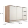 Komoda została wyposażona w dwie zamykane szafki i trzy praktyczne szuflady, co zapewnia dużą ilość miejsca do przechowywania – idealna do przechowywania ubrań, tekstyliów, dokumentów czy innych drobiazgów.