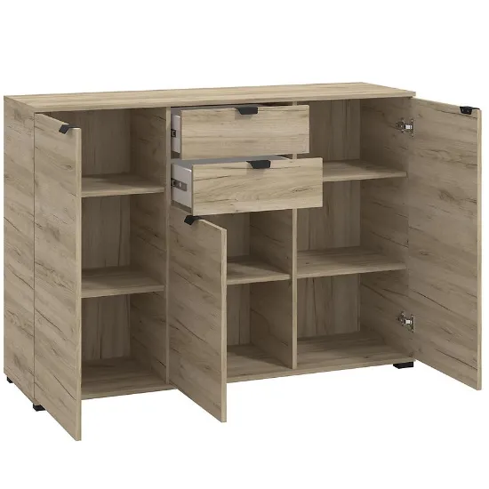 Konstrukcja z płyty wiórowej laminowanej gwarantuje trwałość i łatwość w utrzymaniu czystości. Komoda Duerto to nie tylko praktyczne rozwiązanie do przechowywania, ale również stylowy element kolekcji Duerto, który doda charakteru każdemu pomieszczeniu.