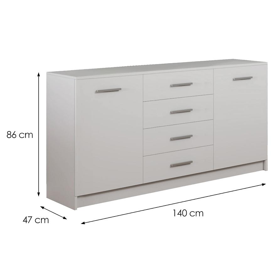Wykonana z solidnej płyty wiórowej laminowanej, zarówno w konstrukcji frontów, jak i korpusu, komoda DUO 2D4S charakteryzuje się trwałością oraz odpornością na codzienne użytkowanie. Matowe wykończenie zarówno frontów, jak i korpusu dodaje elegancji i sprawia, że mebel ten idealnie wpisuje się w nowoczesne aranżacje wnętrz. Kolor jest neutralny, co umożliwia łatwe dopasowanie komody do różnych stylów dekoracyjnych oraz kolorystyki pomieszczenia.