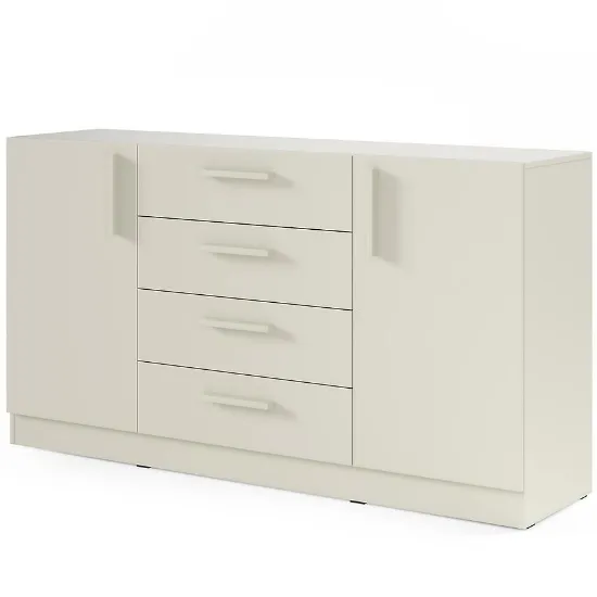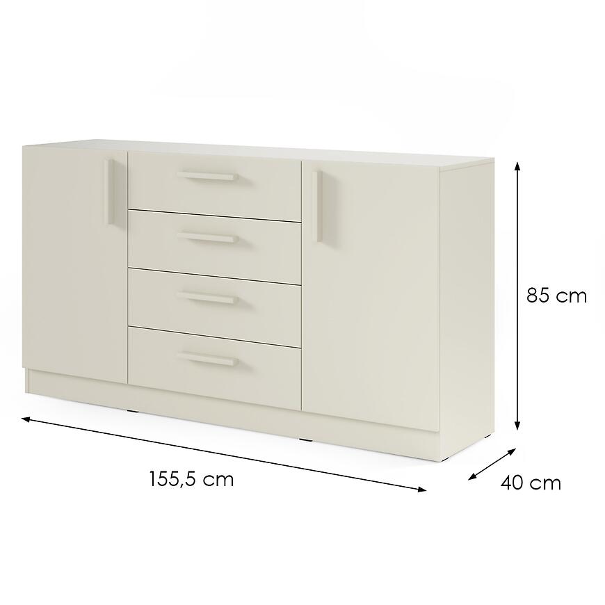 Komoda Braga BRK1 w kolorze kaszmir to nowoczesny mebel łączący styl z funkcjonalnością. Jej szerokość 155,5 cm i wysokość 85 cm zapewniają dużą powierzchnię użytkową, a głębokość 40 cm pozwala na wygodne przechowywanie ubrań, dokumentów czy akcesoriów domowych.