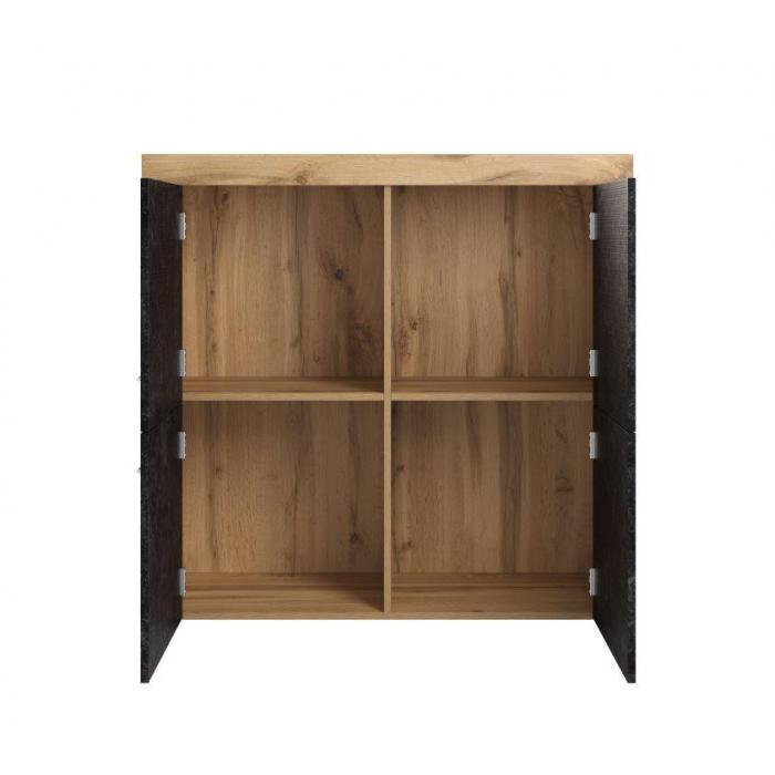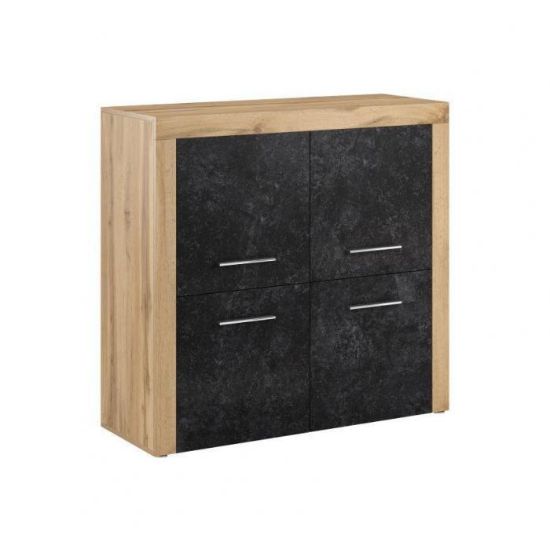 Komoda Smart to klasyczny mebel do pokoju młodzieżowego. Komoda w kolorze korpusu dąb wotan, fronty w kolorze czarnego betonu wpasuje się w wiele aranżacji w nowoczesnych wnętrzach jak również we wnętrzach klasycznych. Szafka posiada drzwiczki dzięki czemu ma łatwy dostęp do wnętrza oraz odpowiednią przestrzeń do przechowywania odzieży lub innych przedmiotów. Płyta laminowana to płyta, z której wykonano komodę. Do kompletu można dokupić inne meble z kolekcji.