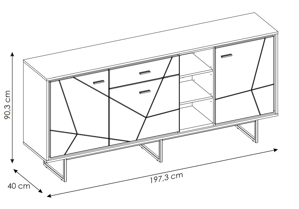 Solidny korpus z płyty laminowanej, fronty z płyty MDF barwionej w czarnej masie i pokrytej folią PVC w połysku oraz stabilny metalowy stelaż gwarantują trwałość i estetykę mebla na lata. Komoda dwudrzwiowa Brolo Typ BROK06 to połączenie przestrzeni, funkcjonalności i nowoczesnego designu, które doskonale wpisuje się w każde eleganckie wnętrze.