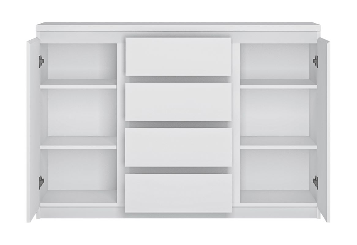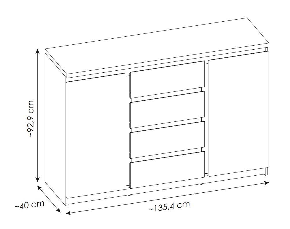 Komoda Fribo FRIK03 to idealny wybór dla miłośników porządku i estetyki. W jej wnętrzu znajduje się cztery pojemne szuflady z systemem pełnego wysuwu oraz funkcjonalne półki ukryte za drzwiami, które umożliwiają wygodne przechowywanie zarówno drobiazgów, jak i większych przedmiotów. Dzięki przemyślanemu układowi wnętrza, mebel doskonale sprawdzi się w salonie, sypialni, gabinecie czy jadalni — wszędzie tam, gdzie potrzebna jest dodatkowa, estetyczna przestrzeń do przechowywania.