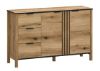 Komoda dwudrzwiowa z szufladami Helios 9 to połączenie elegancji, funkcjonalności i solidnego wykonania. Wykonana z wysokiej jakości płyty meblowej laminowanej, prezentuje się w urokliwym kolorze dąb evok, z matowym wykończeniem, które nadaje wnętrzu nowoczesnego charakteru. Subtelne ryfle na frontach komody dodają delikatnego akcentu, tworząc harmonijną całość z resztą kolekcji Helios.