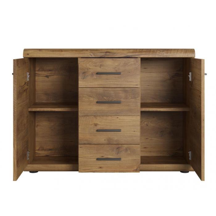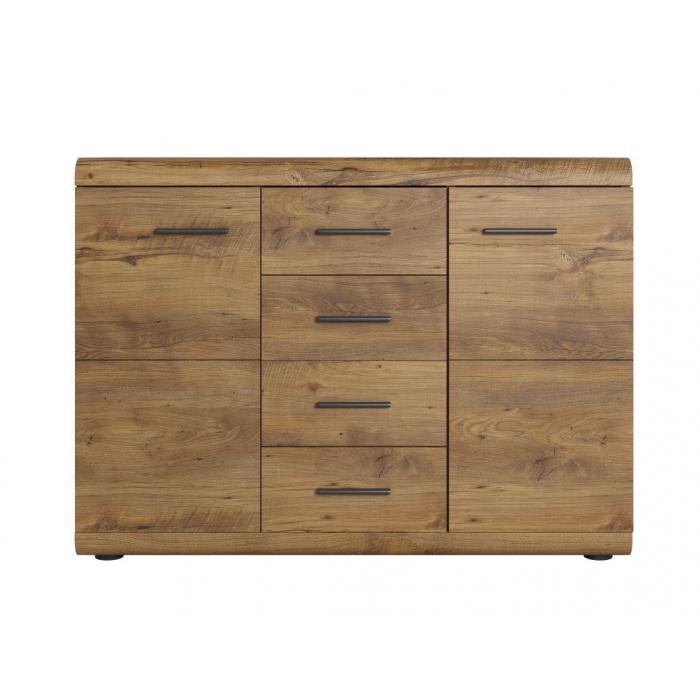 Komoda Elen wpasuje się w każdą przestrzeń. Posiada 4 szuflady oraz 2 zamykane szafki, które pozwolą na odpowiednie zagospodarowanie. Elen doskonale odnajdzie się w każdym pomieszczeniu, również w jadalni czy salonie.