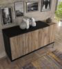 Funkcjonalność komody Eleonor podkreśla trzydrzwiowy układ, który ukrywa wewnętrzne półki, zapewniając obszerną przestrzeń do przechowywania. Dodatkowe półki umożliwiają zorganizowanie wnętrza zgodnie z własnymi potrzebami, a ozdobny front oraz metalowana rama podkreślają estetykę mebla.