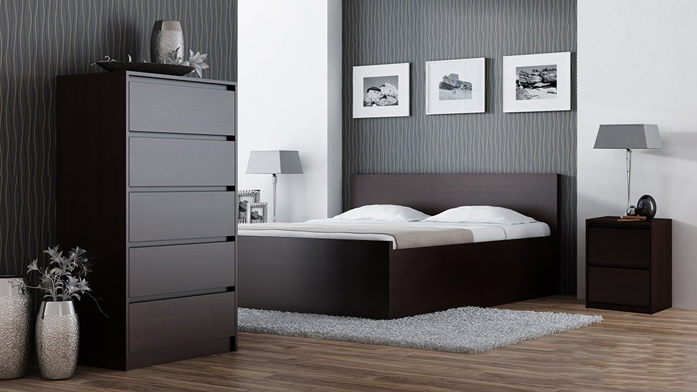 Komoda Elia to mebel idealny do pokoju dziennego, salonu lub sypialni. Wpasuje się w wiele aranżacji w nowoczesnych wnętrzach jak również we wnętrzach klasycznych. Szafka posiada szuflady do przechowywania odzieży lub innych przedmiotów. Szuflady bezuchwytowe wyposażone zostały w prowadnice rolkowe. Płyta laminowana o grubości 16mm to płyta, z której wykonano komodę. Do kompletu można dokupić inne meble z kolekcji.