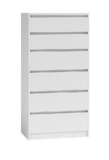 Biała komoda Elia to mebel idealny do pokoju dziennego, salonu lub sypialni. Wpasuje się w wiele aranżacji w nowoczesnych wnętrzach jak również we wnętrzach klasycznych. Szafka posiada szuflady do przechowywania odzieży lub innych przedmiotów. Szuflady bezuchwytowe wyposażone są w prowadnice rolkowe. Płyta laminowana o grubości 16mm to płyta, z której wykonano komodę. Do kompletu można dokupić inne meble z kolekcji.