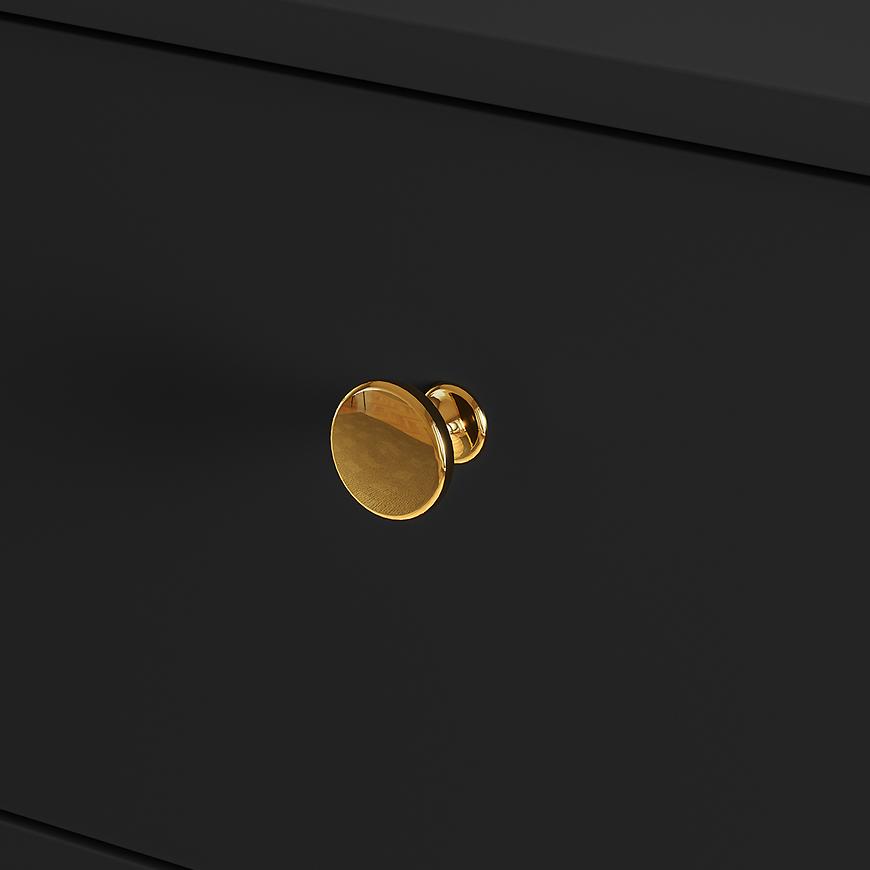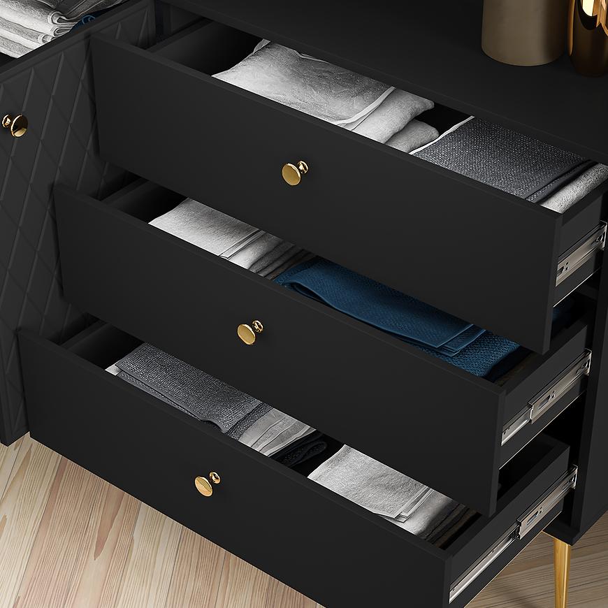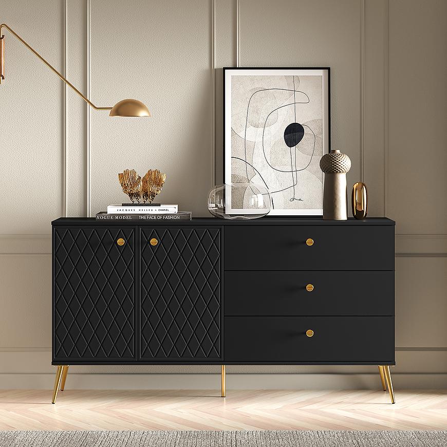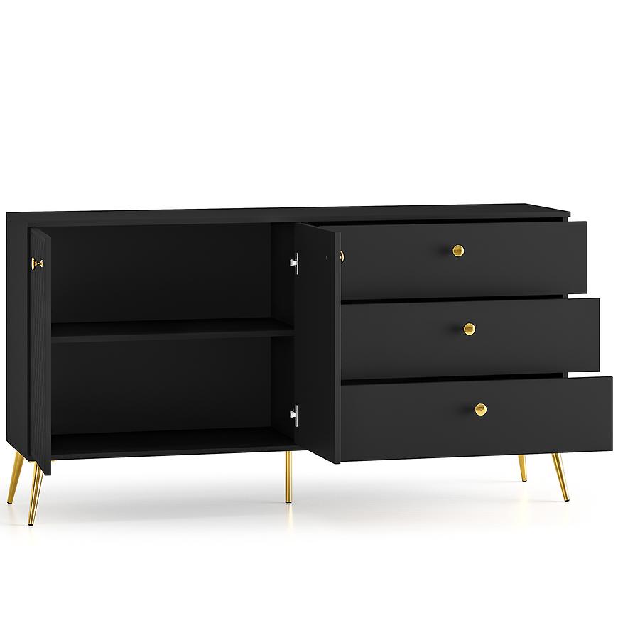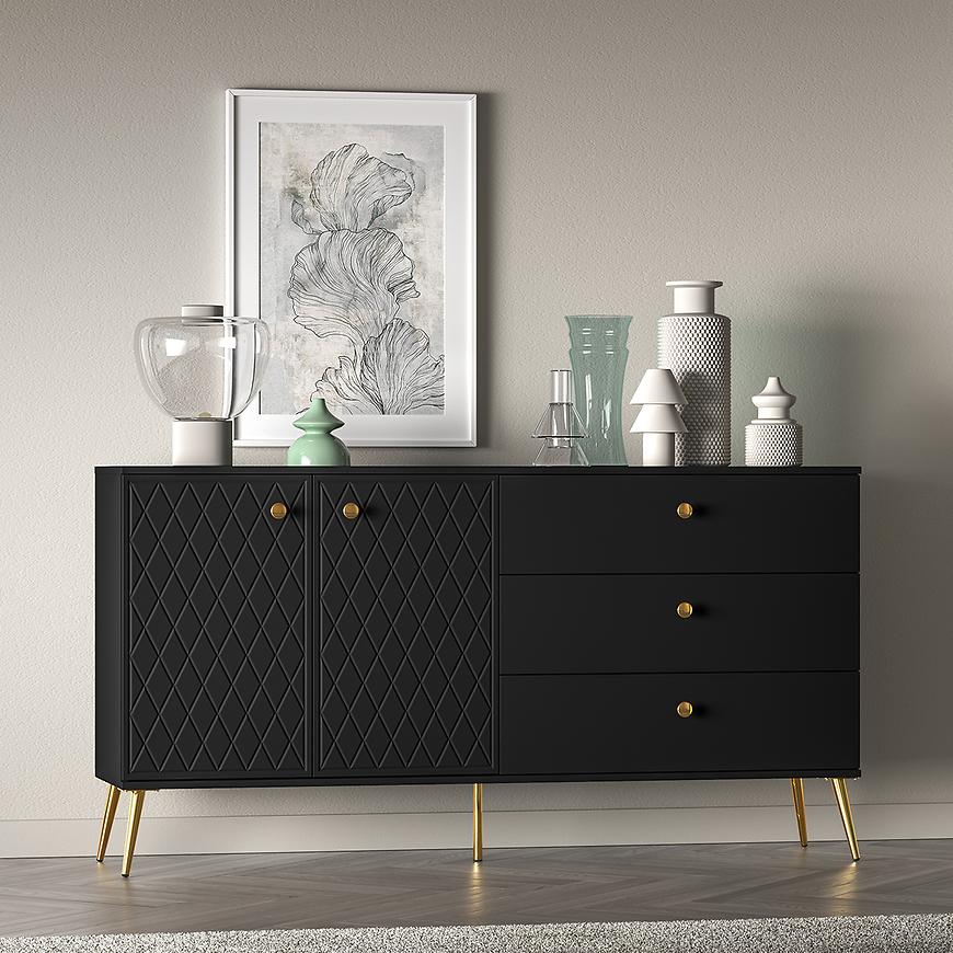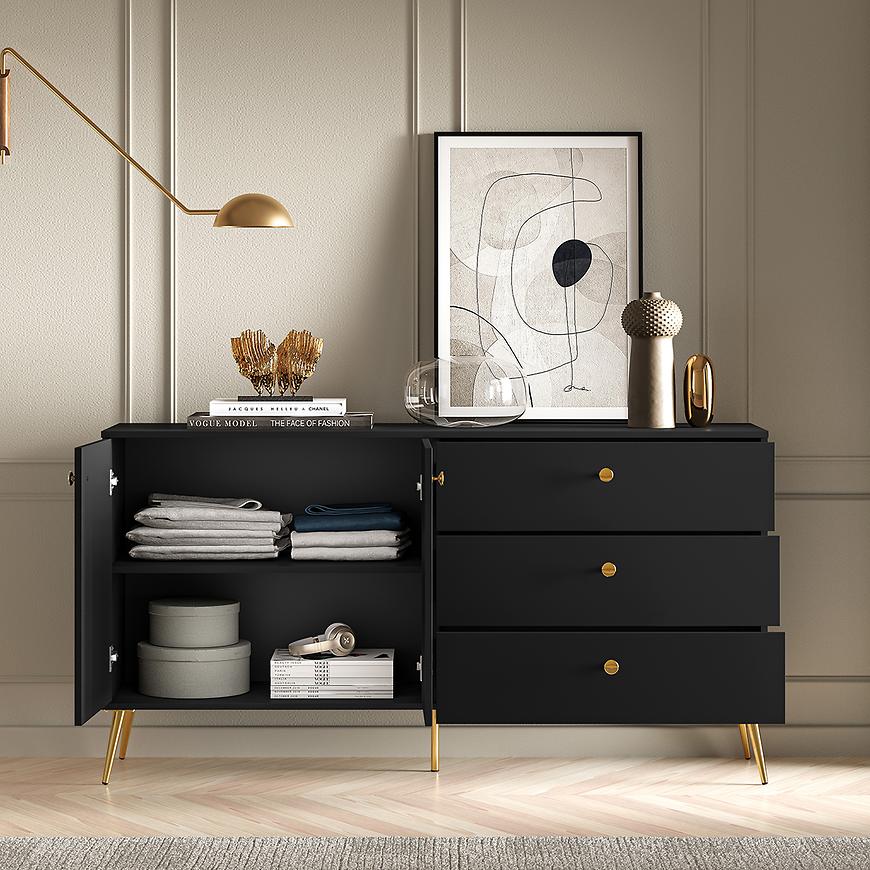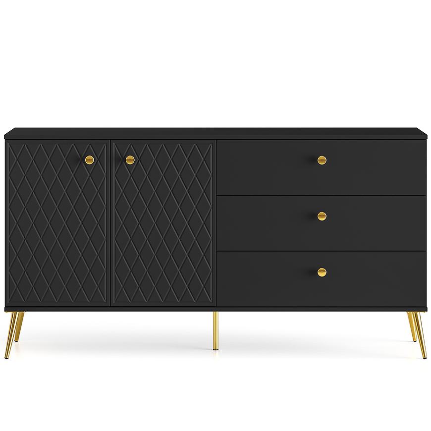 Komoda Eljot 01 w kolorze czarnym to nowoczesny i funkcjonalny mebel, który łączy elegancki design z praktycznym zastosowaniem. W całości wykonana z laminowanej płyty wiórowej, zarówno fronty, jak i korpus, prezentuje jednolite matowe wykończenie w klasycznej czerni, które nadaje meblowi ponadczasowy charakter i doskonale komponuje się z nowoczesnymi aranżacjami wnętrz. Komoda posiada dwudrzwiowe fronty oraz trzy pojemne szuflady, które zapewniają wygodne miejsce do przechowywania odzieży, akcesoriów czy innych drobnych przedmiotów, pozwalając utrzymać porządek w pomieszczeniu.