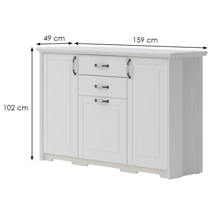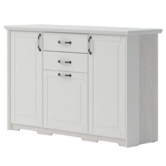 Komoda Evergreen w kolorze polar pine/ivory to przede wszystkim nowoczesność i funkcjonalność w jednym. Mebel doskonale sprawdzi się w każdym salonie. Materiał wykonania to płyta MDF lakierowana/płyta wiórowa lakierowana. Komoda posiada dwie szuflady i dwie szafki dzięki czemu ma łatwy dostęp do wnętrza. Wygląd mebli jest nowoczesny, a zarazem uniwersalny. Mebel będzie pasował do wielu pomieszczeń jak np. jadalni czy pokoju dziennego. Meble jest bardzo pojemny, dlatego sprawdzi się w każdym pomieszczeniu - zarówno w sypialni, pokoju dziennym, młodzieżowym, czy też salonie. Mebel do samodzielnego montażu.