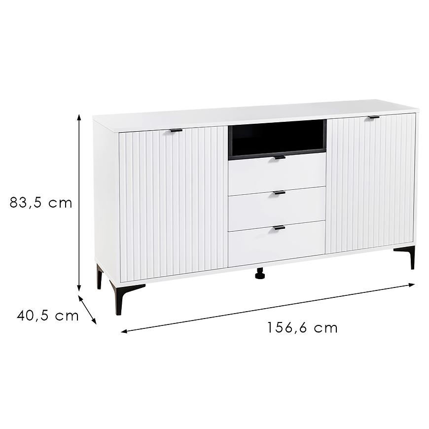 Komoda Fabio 2D3S z białym blatem to nowoczesny i elegancki mebel, który idealnie wpisuje się w potrzeby współczesnych wnętrz. Oferuje szerokie możliwości przechowywania, łącząc funkcjonalność z minimalistycznym designem. Dzięki swoim wymiarom – 156,6 cm szerokości, 83,5 cm wysokości oraz 40,5 cm głębokości – komoda jest przestronna i doskonale nadaje się do salonu, sypialni czy przedpokoju. Wyposażona w dwie zamykane szafki oraz trzy pojemne szuflady, pozwala na wygodne przechowywanie różnorodnych przedmiotów, od ubrań, przez dokumenty, po domowe akcesoria.