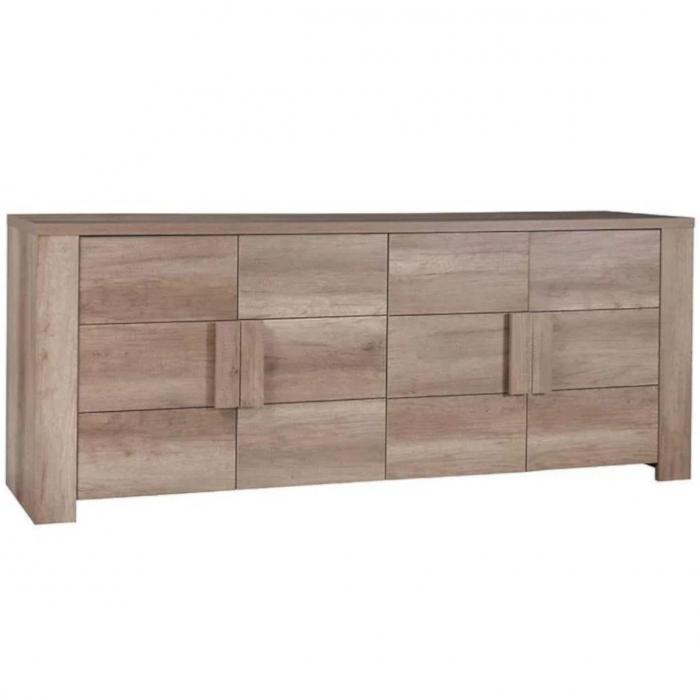 Komoda Ferrara to klasyczny mebel do pokoju dziennego lub salonu. Wpasuje się w wiele aranżacji w nowoczesnych wnętrzach jak również we wnętrzach klasycznych. Kolekcja Ferrara wykonana została w kolorze dąb canyon, który imituje naturalny rysunek słojów. Aranżacje inspirowane drewnem nie tracą na popularności. Szafka posiada drzwiczki dzięki czemu ma łatwy dostęp do wnętrza oraz odpowiednią przestrzeń do przechowywania odzieży lub innych przedmiotów. Płyta laminowana to płyta, z której wykonano komodę. Do kompletu można dokupić inne meble z kolekcji.