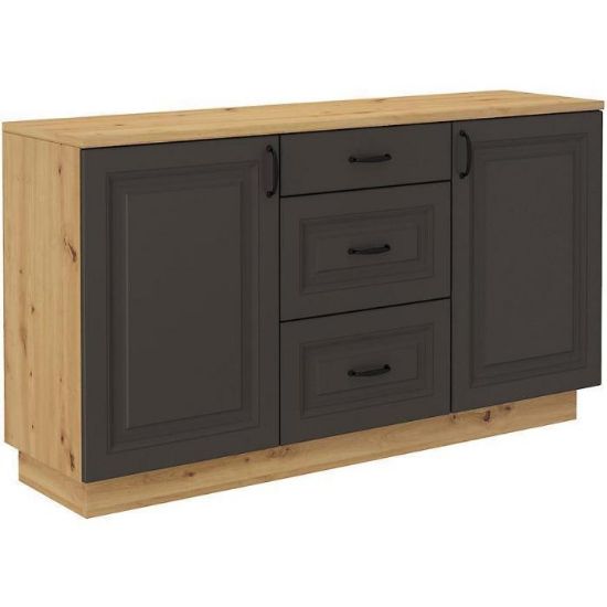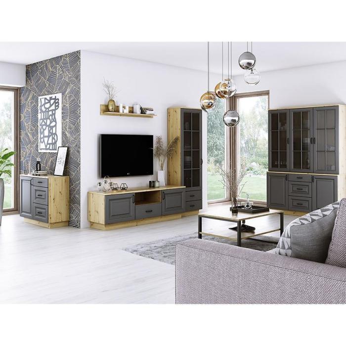 Kolekcja Flawia to meble ponadczasowe pasujące do nowoczesnych wnętrz jak i tych klasycznych. Kolorystyka mebli wpasuje się w wiele aranżacji w twoim salonie lub pokoju dziennym. Meble wykonane zostały z płyty MDF oraz z płyty wiórowej laminowanej. Do kompletu można dokupić inne meble z kolekcji. Komoda posiada drzwiczki oraz szuflady, dzięki czemu ma łatwy dostęp do wnętrza. Komoda dopełni również wystrój salonu, czy przedpokoju, stanowiąc wygodne miejsce do przechowywania mniejszych i większych rzeczy. Mebel do samodzielnego montażu.