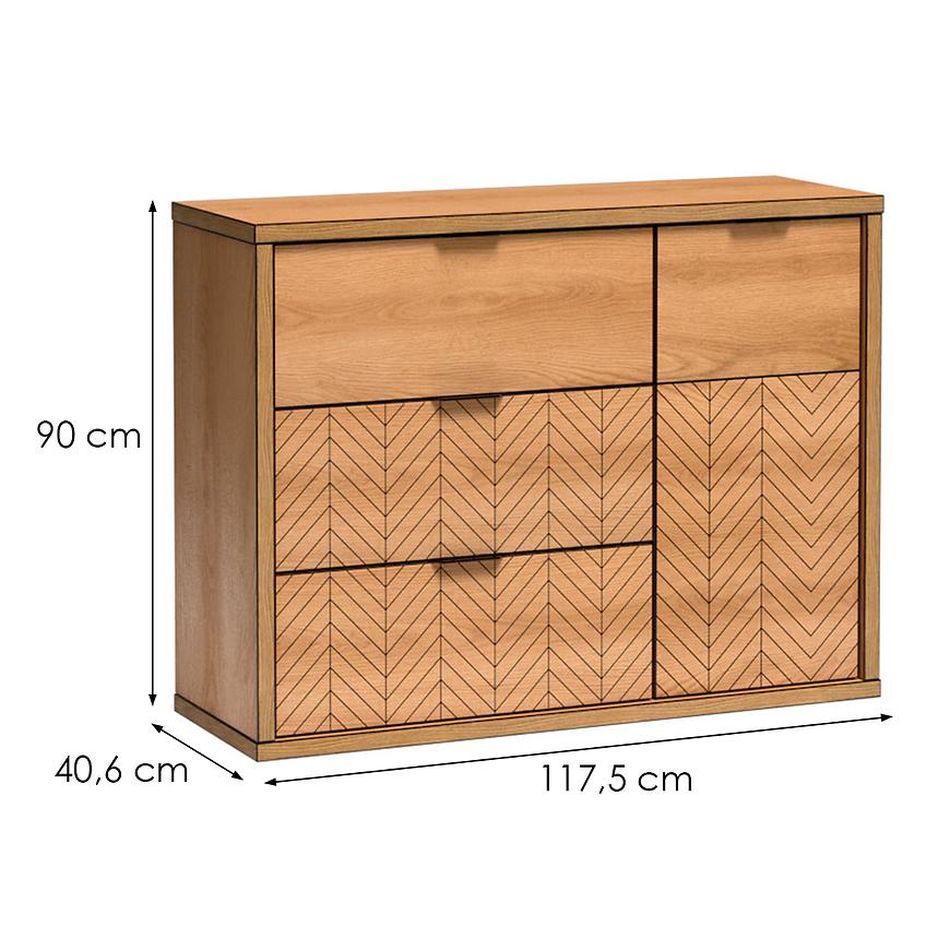 Komoda Fonti F5 w kolorze Dąb Karmel to mebel, który łączy w sobie funkcjonalność, estetykę i nowoczesny design. Ta komoda doskonale wpasuje się w różnorodne wnętrza, dodając im stylu i praktycznego miejsca do przechowywania.