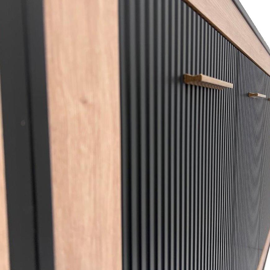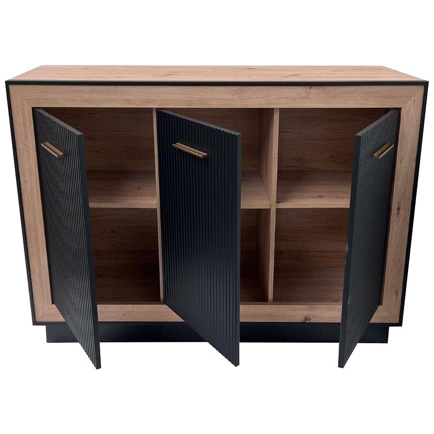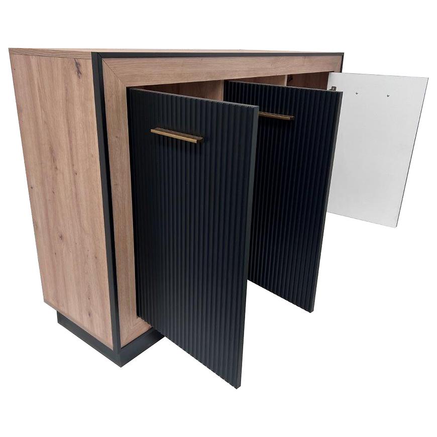 Komoda Fox 12 artisan z kolekcji FOX to nowoczesny mebel o wyjątkowym designie i praktycznych rozwiązaniach. Jej ciemne drewnopodobne wybarwienie oraz matowe, czarne fronty nadają komodzie eleganckiego i stylowego wyglądu.
