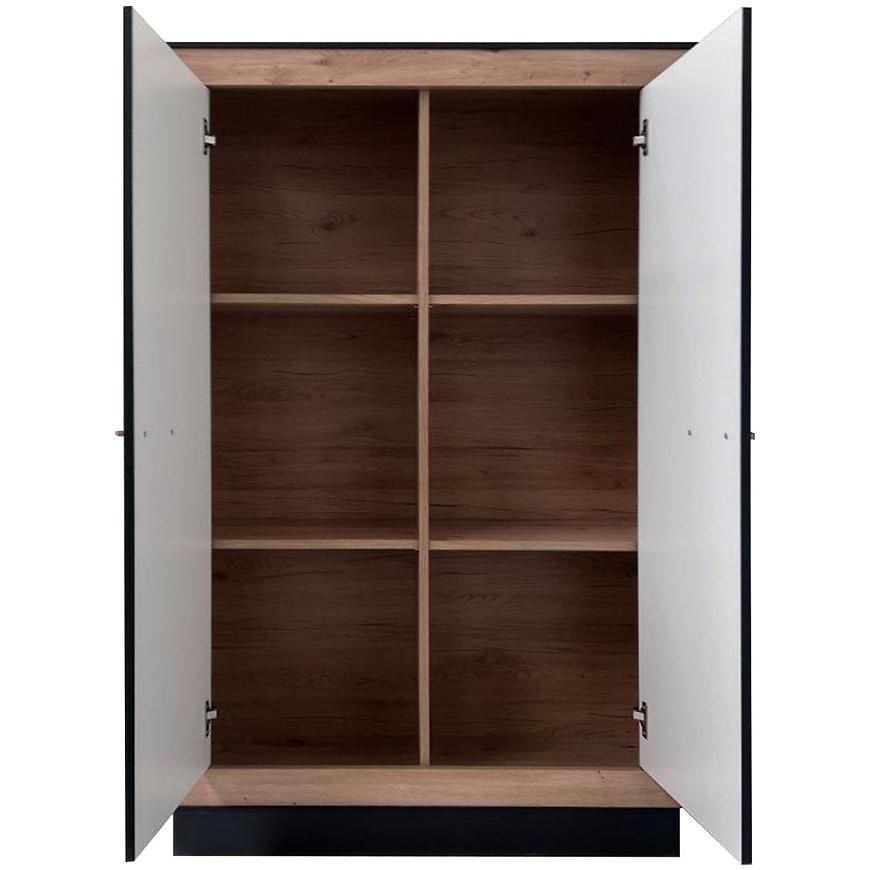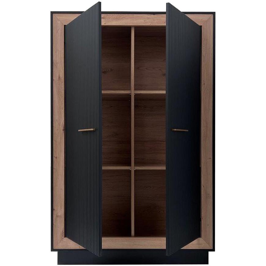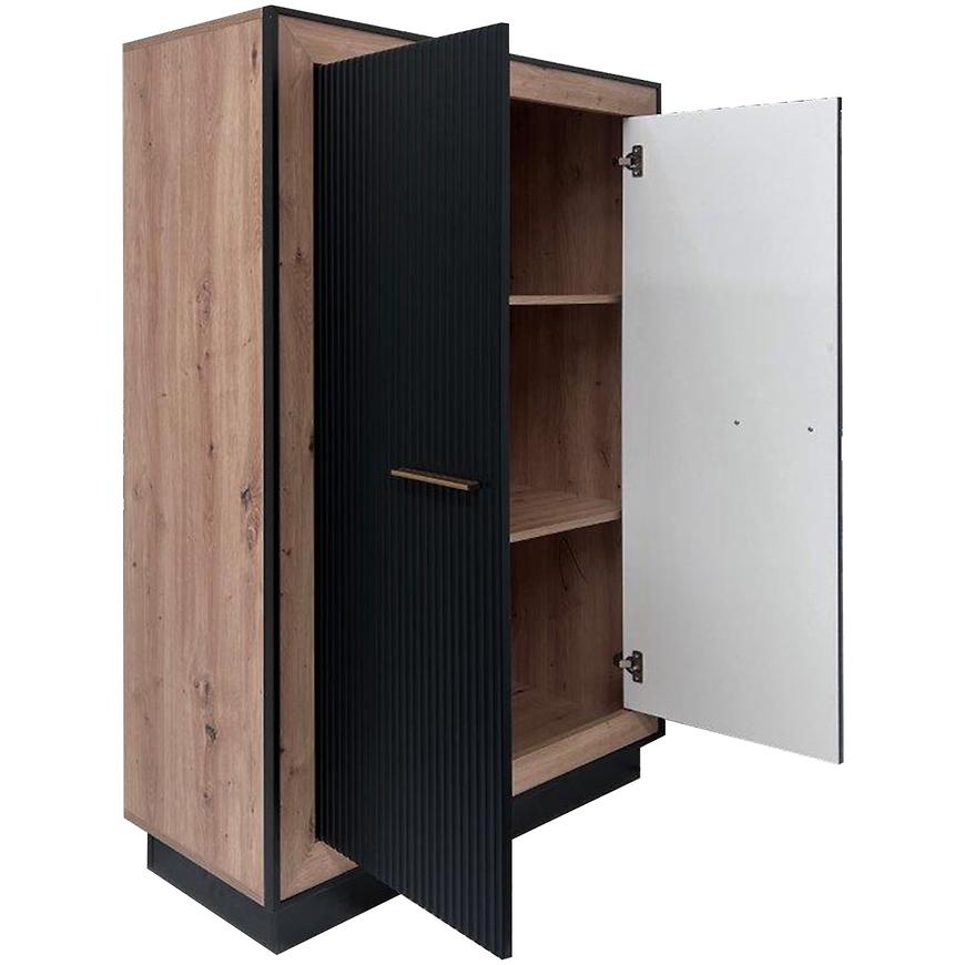 Komoda posiada dwudrzwiowy system, co ułatwia dostęp do jej wnętrza oraz wygodne przechowywanie.