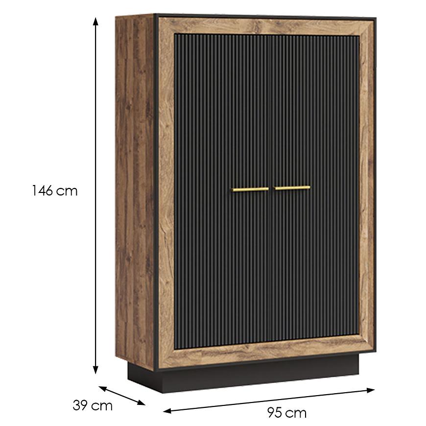 Wymiary komody to 146 cm wysokości, 95 cm szerokości i 39 cm głębokości, co sprawia, że jest to doskonałe rozwiązanie do przechowywania różnorodnych przedmiotów.