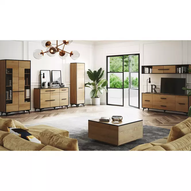 Komoda Frida II K3D3S w kolorze dąb riviera to nowoczesny mebel, który doskonale sprawdzi się w loftowych i minimalistycznych aranżacjach wnętrz. Jej prosta, ale elegancka forma, podkreślona drewnopodobnym wybarwieniem, nadaje pomieszczeniom ciepły i naturalny charakter.