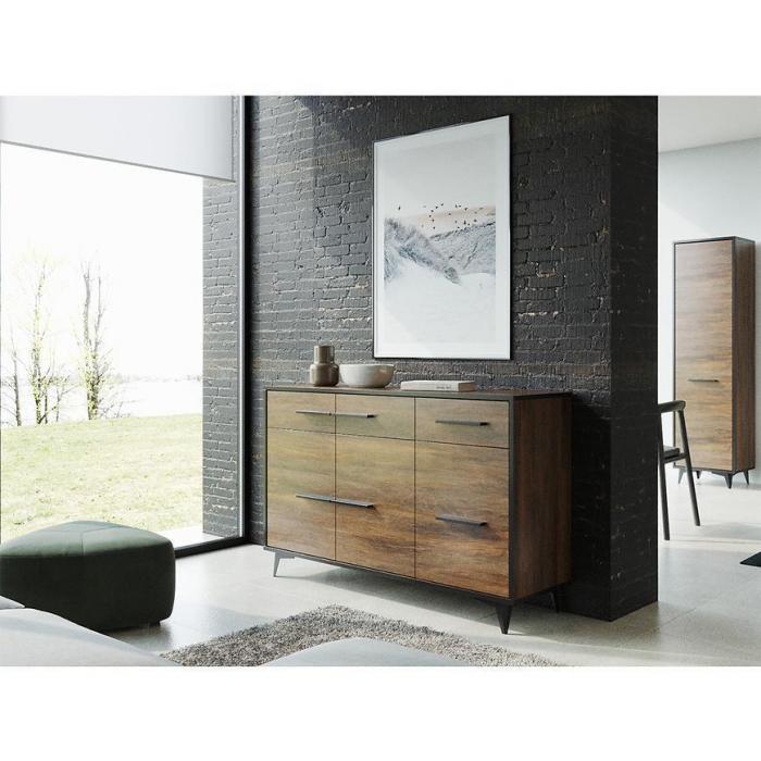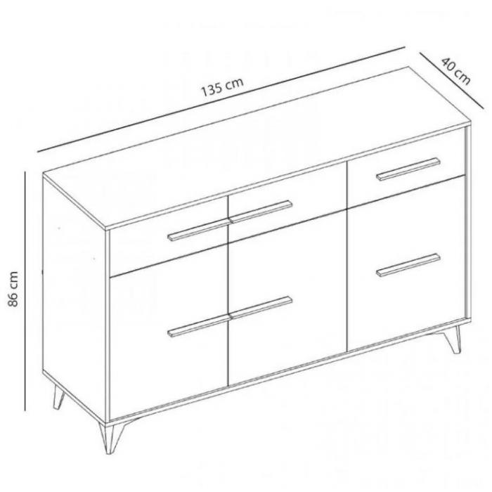 Komoda Frida wpasuje się w każdą przestrzeń. Posiada 2 zamykane szafki oraz 3 szuflady, które pozwolą na odpowiednie zagospodarowanie. Frida doskonale odnajdzie się w każdym pomieszczeniu, również w jadalni czy salonie.