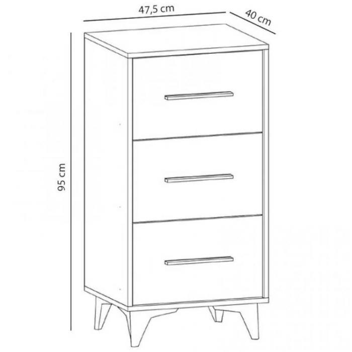 Komoda Frida wpasuje się w każdą przestrzeń. Posiada 3 szuflady, które pozwolą na odpowiednie zagospodarowanie. Frida doskonale odnajdzie się w każdym pomieszczeniu, również w jadalni czy salonie.
