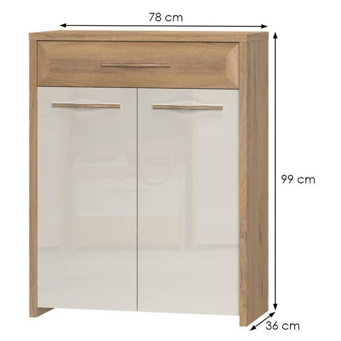 Komoda Gala w kolorze beige/polar pine to przede wszystkim nowoczesność i funkcjonalność w jednym. Mebel doskonale sprawdzi się w każdym salonie. Materiał wykonania to płyta wiórowa laminowana. Komoda posiada jedną szufladę oraz dwie szafki dzięki czemu ma łatwy dostęp do wnętrza. Wygląd mebli jest nowoczesny, a zarazem uniwersalny. Mebel będzie pasował do wielu pomieszczeń jak np. jadalni czy pokoju dziennego. Meble jest bardzo pojemny, dlatego sprawdzi się w każdym pomieszczeniu - zarówno w sypialni, pokoju dziennym, młodzieżowym, czy też salonie. Mebel do samodzielnego montażu.