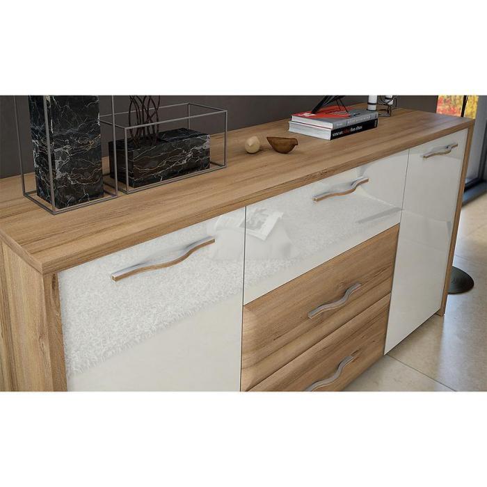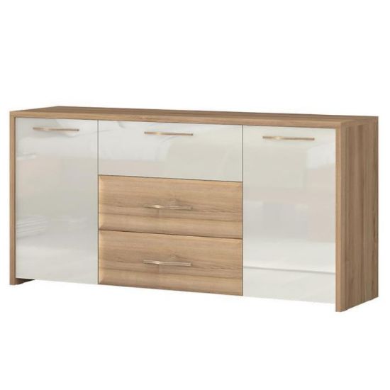 Komoda Gala w kolorze pacific walnut/beige to przede wszystkim nowoczesność i funkcjonalność w jednym. Mebel doskonale sprawdzi się w każdym salonie. Materiał wykonania to płyta wiórowa laminowana. Komoda posiada trzy szuflady i dwie szafki dzięki czemu ma łatwy dostęp do wnętrza. Wygląd mebli jest nowoczesny, a zarazem uniwersalny. Mebel będzie pasował do wielu pomieszczeń jak np. jadalni czy pokoju dziennego. Meble jest bardzo pojemny, dlatego sprawdzi się w każdym pomieszczeniu - zarówno w sypialni, pokoju dziennym, młodzieżowym, czy też salonie. Mebel do samodzielnego montażu.