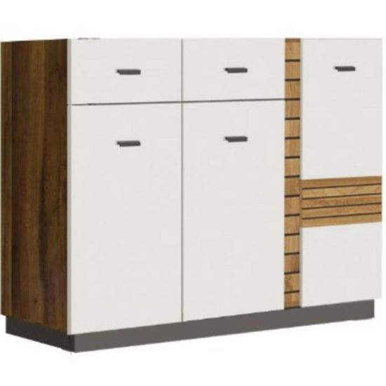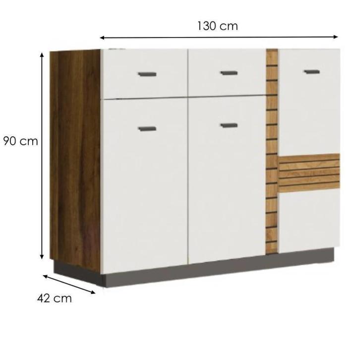 Komoda Gardena w kolorze latte/ciemny orzech to przede wszystkim nowoczesność i funkcjonalność w jednym. Mebel doskonale sprawdzi się w każdym salonie. Materiał wykonania to płyta wiórowa laminowana. Komoda posiada dwie szuflady i trzy szafki dzięki czemu ma łatwy dostęp do wnętrza. Wygląd mebli jest nowoczesny, a zarazem uniwersalny. Mebel będzie pasował do wielu pomieszczeń jak np. jadalni czy pokoju dziennego. Meble jest bardzo pojemny, dlatego sprawdzi się w każdym pomieszczeniu - zarówno w sypialni, pokoju dziennym, młodzieżowym, czy też salonie. Mebel do samodzielnego montażu.