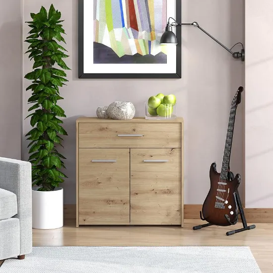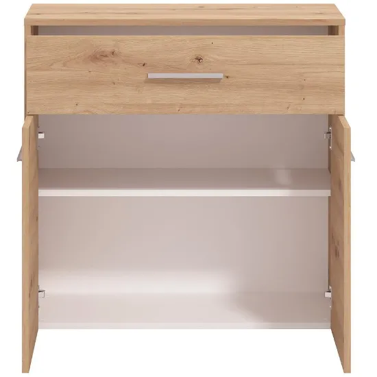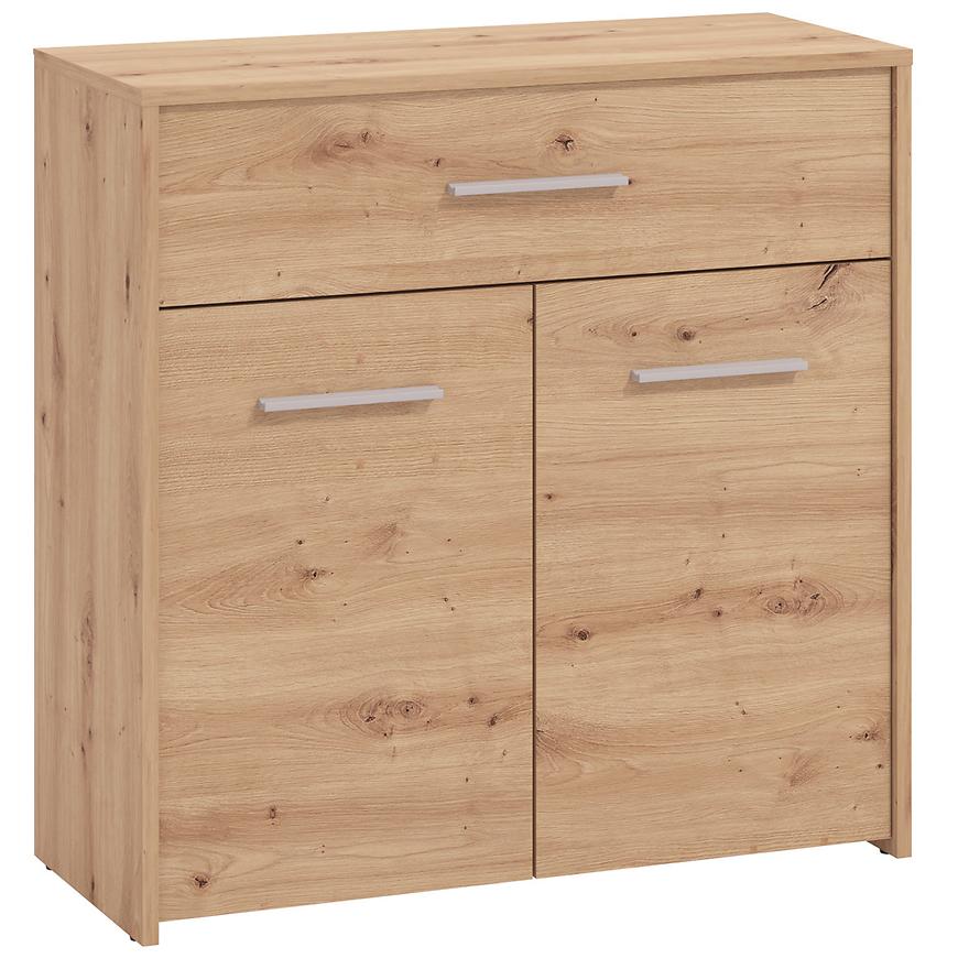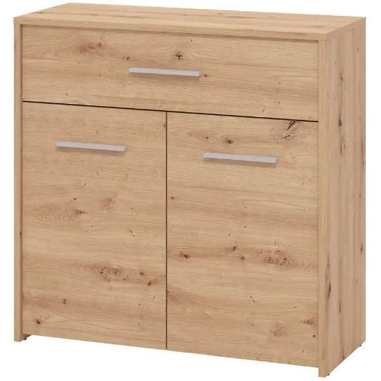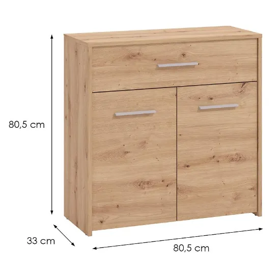 Komoda Garona to elegancka i funkcjonalna meblościanka, idealna do nowoczesnych wnętrz. Jej dwudrzwiowy design z jedną szufladą zapewnia dużo miejsca na przechowywanie. Fronty w kolorze artisan oraz matowe wykończenie korpusu nadają jej nowoczesny wygląd, który doskonale komponuje się z różnorodnymi aranżacjami wnętrz.