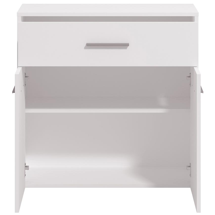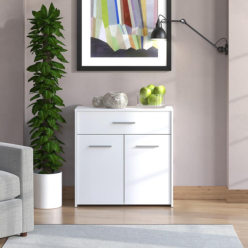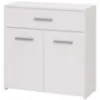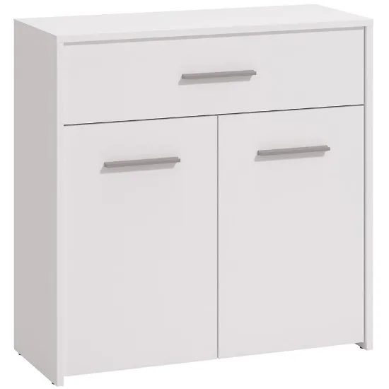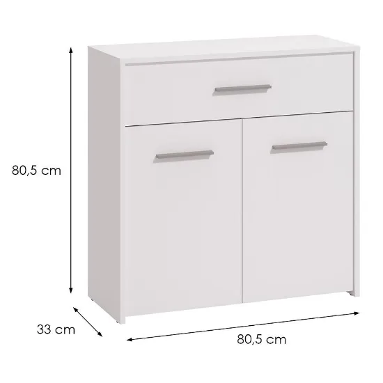 Komoda Garona to elegancka i funkcjonalna meblościanka, idealna do nowoczesnych wnętrz. Jej dwudrzwiowy design z jedną szufladą zapewnia dużo miejsca na przechowywanie. Fronty w kolorze białym oraz matowe wykończenie korpusu nadają jej nowoczesny wygląd, który doskonale komponuje się z różnorodnymi aranżacjami wnętrz.