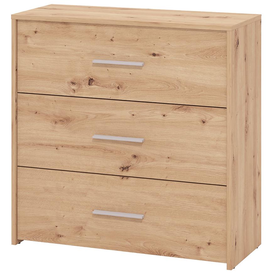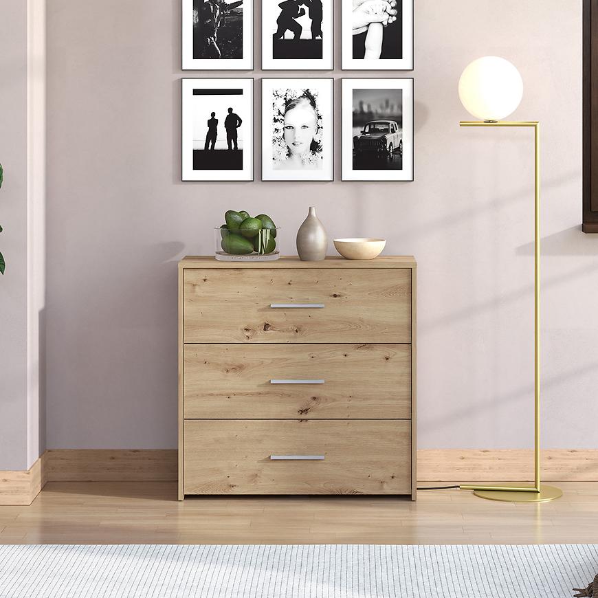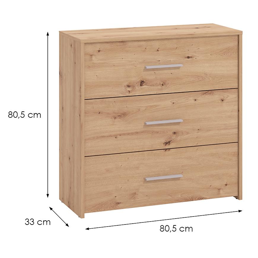 Komoda Garona to elegancka i funkcjonalna meblościanka, idealna do nowoczesnych wnętrz. Jej trzy szuflady zapewniają dużo miejsca na przechowywanie. Fronty w kolorze artisan oraz matowe wykończenie korpusu nadają jej nowoczesny wygląd, który doskonale komponuje się z różnorodnymi aranżacjami wnętrz.