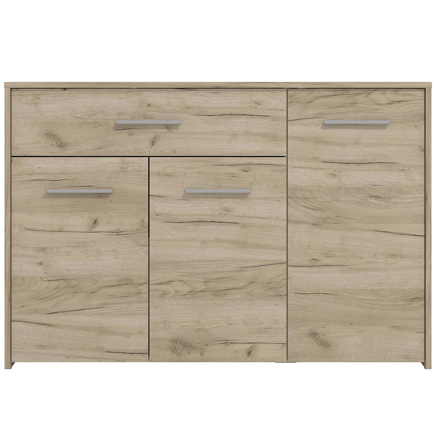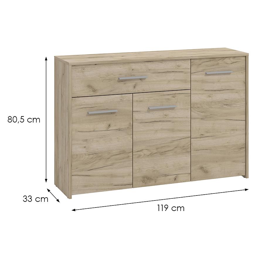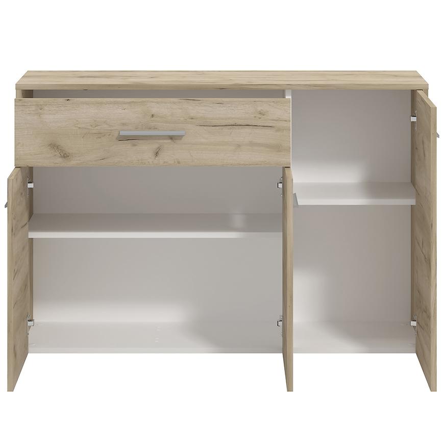 Komoda Garona to elegancka i funkcjonalna meblościanka, idealna do nowoczesnych wnętrz. Jej trzydrzwiowy design z jedną szufladą zapewnia dużo miejsca na przechowywanie. Fronty w kolorze szary dąb oraz matowe wykończenie korpusu nadają jej nowoczesny wygląd, który doskonale komponuje się z różnorodnymi aranżacjami wnętrz.