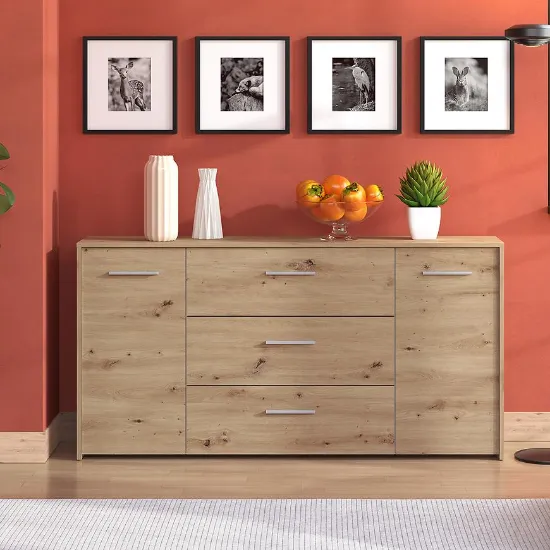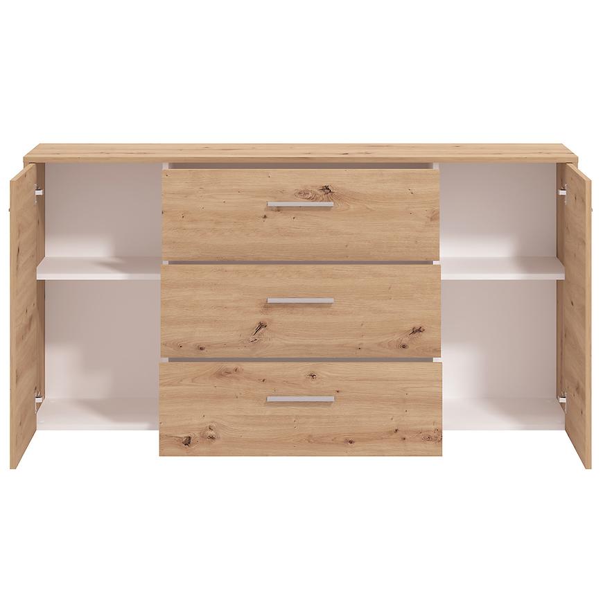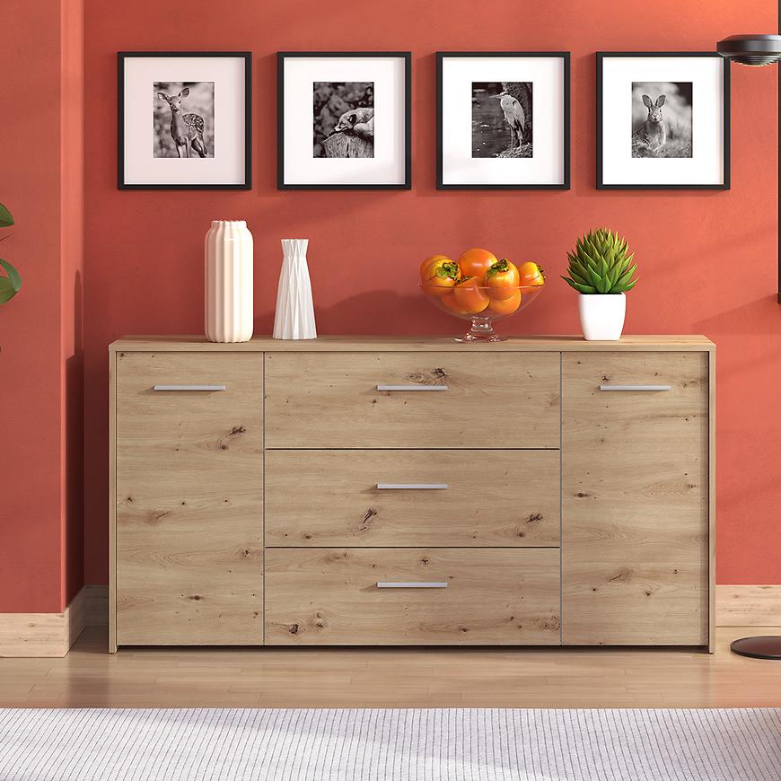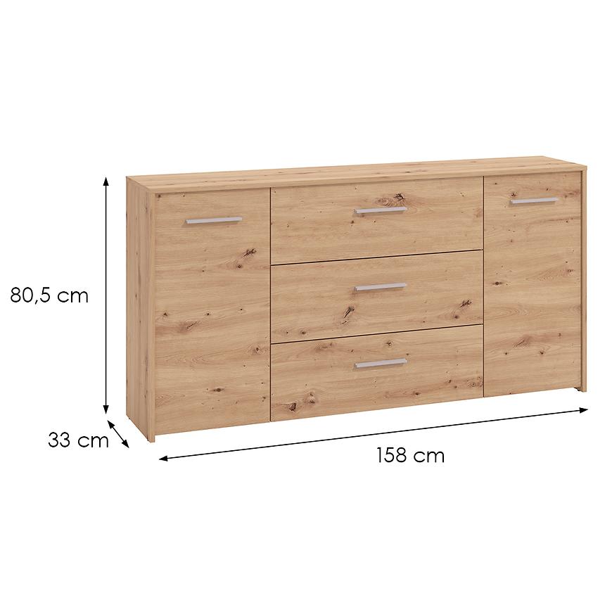 Komoda Garona to elegancka i funkcjonalna meblościanka, idealna do nowoczesnych wnętrz. Jej dwudrzwiowy design z trzema szufladami zapewnia dużo miejsca na przechowywanie. Fronty w kolorze artisan oraz matowe wykończenie korpusu nadają jej nowoczesny wygląd, który doskonale komponuje się z różnorodnymi aranżacjami wnętrz.