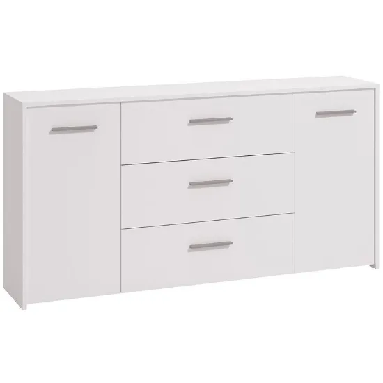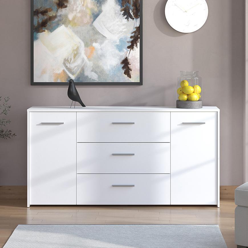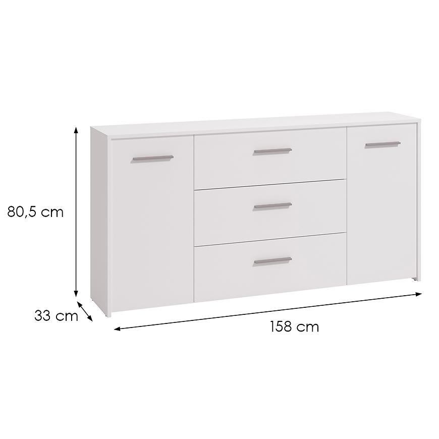 Komoda Garona to elegancka i funkcjonalna meblościanka, idealna do nowoczesnych wnętrz. Jej dwudrzwiowy design z trzema szufladami zapewnia dużo miejsca na przechowywanie. Fronty w kolorze białym oraz matowe wykończenie korpusu nadają jej nowoczesny wygląd, który doskonale komponuje się z różnorodnymi aranżacjami wnętrz.