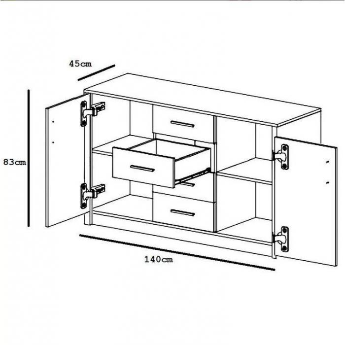 Komoda Genewa to klasyczny mebel do pokoju dziennego lub salonu. Wpasuje się w wiele aranżacji w nowoczesnych wnętrzach jak również we wnętrzach klasycznych. Szafka posiada szuflady i drzwiczki dzięki czemu ma łatwy dostęp do wnętrza oraz odpowiednią przestrzeń do przechowywania odzieży lub innych przedmiotów. Płyta meblowa to płyta, z której wykonano komodę.