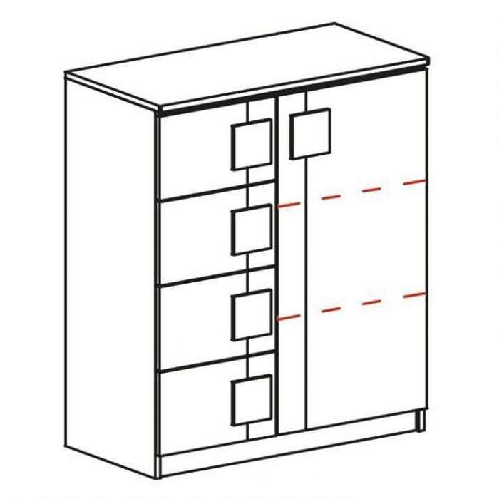 Komoda Gumi to mebel idealny do pokoju dziecięcego lub młodzieżowego. Wpasuje się w wiele aranżacji w nowoczesnych wnętrzach jak również we wnętrzach klasycznych. Szafka posiada szuflady i drzwiczki dzięki czemu ma łatwy dostęp do wnętrza oraz odpowiednią przestrzeń do przechowywania odzieży oraz innych przedmiotów. Płyta meblowa to płyta, z której wykonano komodę. Do kompletu można dokupić inne meble z kolekcji.