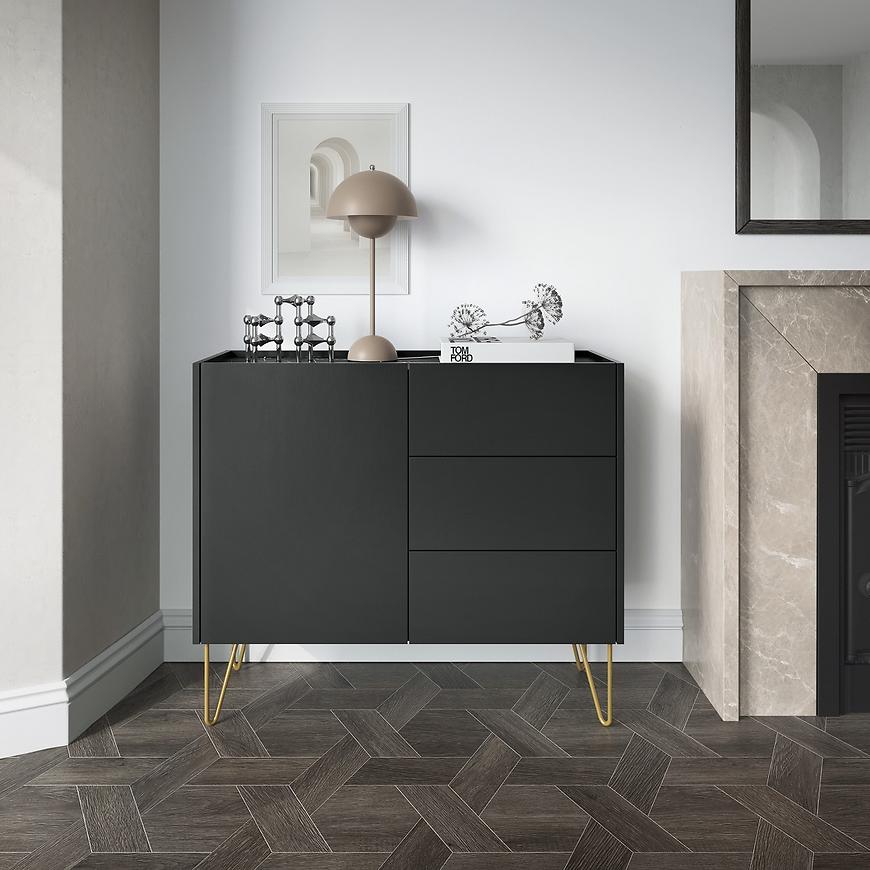 Wykonana z wysokiej jakości płyty wiórowej laminowanej, komoda zapewnia trwałość i odporność na codzienne użytkowanie. Dzięki zastosowaniu matowego wykończenia, mebel ten prezentuje się niezwykle elegancko, a zarazem subtelnie podkreśla szlachetność materiału, z jakiego został wykonany. Ciemne odcienie czarnego grafitu w połączeniu z dekorem marmuru black na blacie, nadają komodzie wyjątkowej głębi i wyszukanego charakteru, który będzie pasował do wnętrz urządzonych zarówno w duchu nowoczesnym, jak i bardziej klasycznym. Model ten oferuje praktyczne rozwiązanie przechowywania dzięki trzem szufladom oraz jednodrzwiowej przestrzeni, za którą kryją się dodatkowe możliwości organizacji przestrzeni.