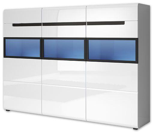 Nowoczesne trendy wnętrzarskie wymagają od właścicieli pomieszczeń pewnej otwartości oraz odwagi. Komoda Hektor Typ 48 nie przypomina mebla o tradycyjnym wzornictwie, a zdecydowanie bliżej jej do oryginalnej i futurystycznej ozdoby. Niezwykły design nie odbiera jednak w tym przypadku walorów użytkowych. Drzwiczki do szafek i szuflad zostały zaprojektowane w systemie bezuchwytowym korespondującym z założeniami minimalizmu. Otwiera się je za pomocą frezowanych wnęk, które odznaczają się na tle frontów w kolorze połyskującej bieli. Komoda Hektor Typ 48 charakteryzuje się nowatorską stylistyką podkreśloną przez trzy gabloty ukryte za szkłem węglowym. Dzięki takiemu rozwiązaniu można wyeksponować różnorodne przedmioty w niespotykany dotąd sposób. Szyby umieszczono w czarnych ramkach, które nadają kompozycji elegancji. Komoda posiada funkcje cichego domykania. Można zamówić dodatkowo oświetlenie LED białe typ 2400A003. Do samodzielnego montażu.