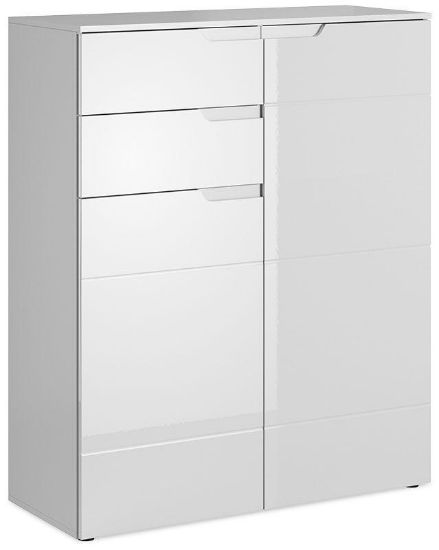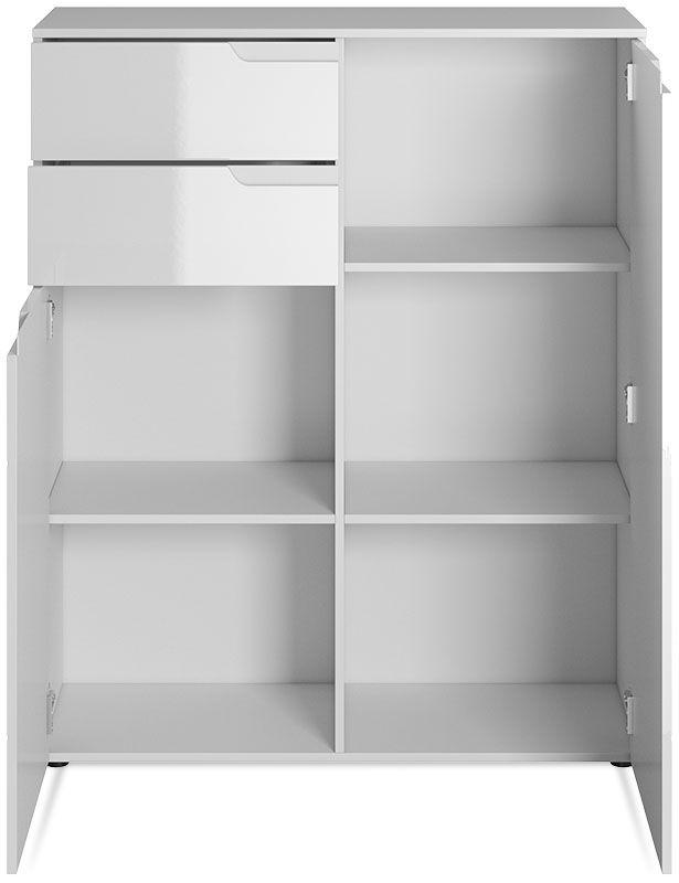 - front komody wykonany z płyty MDF w kolorze Biały Połysk