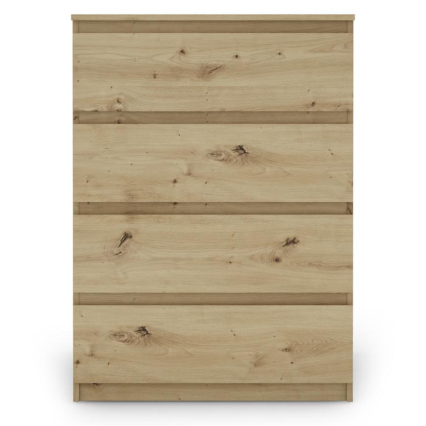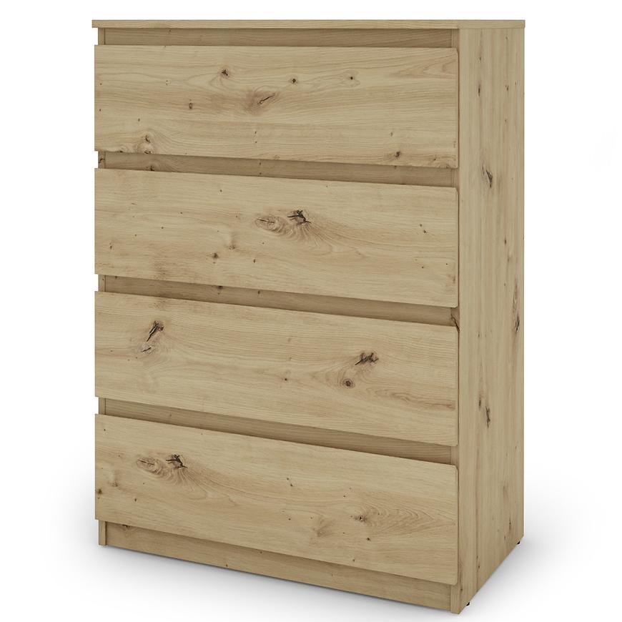 Komoda Hugo 4S w kolorze artisan to doskonałe połączenie nowoczesnego designu z praktycznością, które idealnie wpasuje się w różnorodne wnętrza. Wykonana z wysokiej jakości płyty wiórowej laminowanej, komoda zapewnia trwałość i odporność na codzienne użytkowanie, a matowe wykończenie nadaje jej elegancki, subtelny charakter.