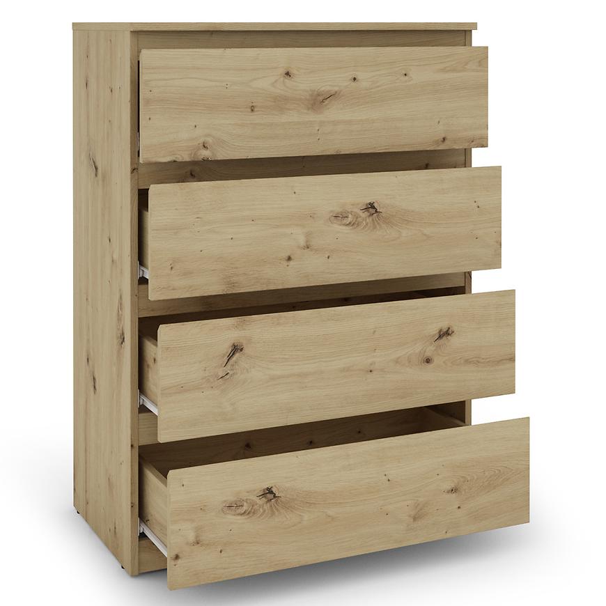 Z czterema pojemnymi szufladami, komoda Hugo 4S oferuje mnóstwo miejsca na przechowywanie różnorodnych przedmiotów, od ubrań po dokumenty czy drobiazgi. Dzięki przemyślanej konstrukcji i funkcjonalnemu rozplanowaniu, każda szuflada zapewnia łatwy dostęp do przechowywanych rzeczy, co ułatwia organizację przestrzeni.
