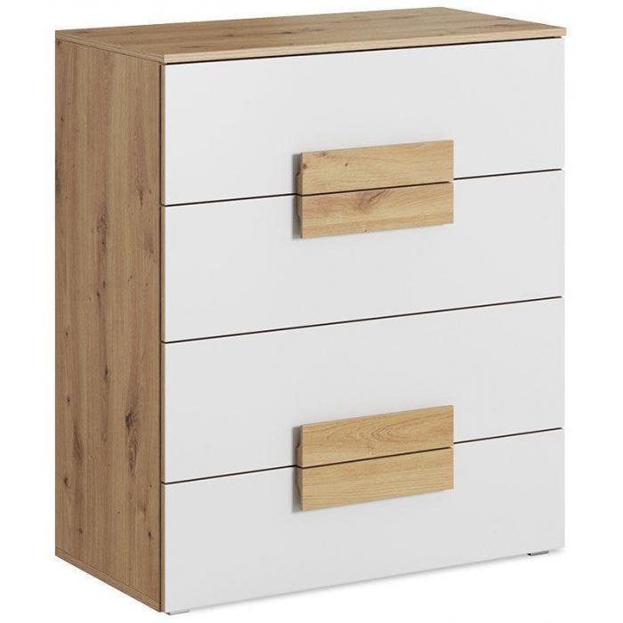 Komoda Imoss LBLK34 to mebel o wyjątkowej bryle, który łączy w sobie styl retro z nowoczesnością. To sprawia, że całość odznacza się ponadczasowym charakterem i wysokim potencjałem aranżacyjnym. Cztery pojemne szuflady są niezwykle wygodne w użytkowaniu. Dzięki nóżkom z solidnego tworzywa możesz łatwo utrzymać porządek pod meblem. Masywne uchwyty z płyty MDF sprawiają, że nie sposób pomylić komody z żadnym innym modelem. Zostały one zamocowane w taki sposób, aby harmonijnie współgrać z frontami szuflad. Mebel jest na tyle wyrazisty, że może z powodzeniem stanowić ozdobę aranżacji, jak również jej praktyczne dopełnienie. Komoda Imoss LBLK34 sprawdzi się w pokoju nastolatka, jak również dorosłej osoby. Zgrabna całość prezentuje się lekko, a zarazem solidnie, stanowiąc odpowiedź na potrzeby klientów, które potrzebują nietuzinkowych mebli. Za sprawą swojego designu, model można łączyć z elementami z tej samej serii lub innych zestawów. Mebel do samodzielnego montażu.