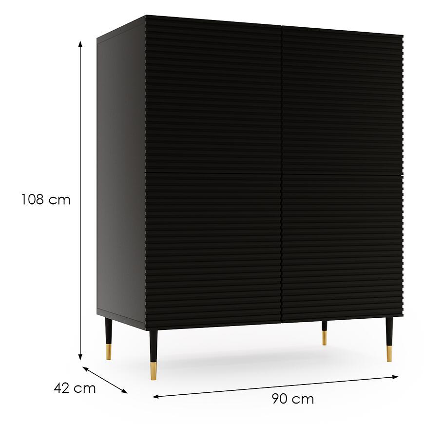 Komoda Imperial I05 4d Czarny to mebel, który łączy elegancję, solidną konstrukcję i funkcjonalność. Jej minimalistyczny wygląd, matowe wykończenie i starannie zaprojektowana forma sprawiają, że jest nie tylko praktycznym elementem wyposażenia, ale również subtelnym akcentem nowoczesnego wnętrza.