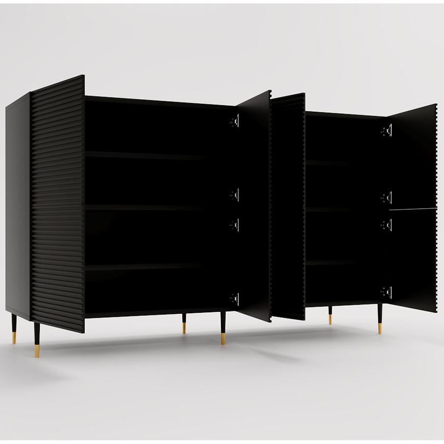 Komoda Imperial I08 8d Czarny łączy w sobie elegancję, solidną konstrukcję i praktyczne rozwiązania. Jej nowoczesny wygląd, matowe wykończenie i starannie dopracowane proporcje sprawiają, że jest funkcjonalnym i stylowym meblem, który doskonale komponuje się w nowoczesnych wnętrzach.