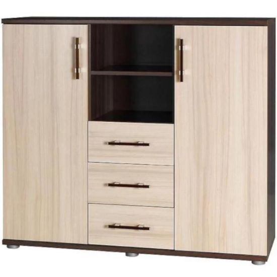 Doskonałym wyborem do pokoju dziennego będzie komoda w kolorze jesion ciemny z serii Inez, materiał wykonania to płyta laminowana. Komoda posiada drzwiczki oraz szuflady, dzięki czemu ma łatwy dostęp do wnętrza. Komoda dopełni również wystrój salonu, czy przedpokoju, stanowiąc wygodne miejsce do przechowywania mniejszych i większych rzeczy. Mebel do samodzielnego montażu.