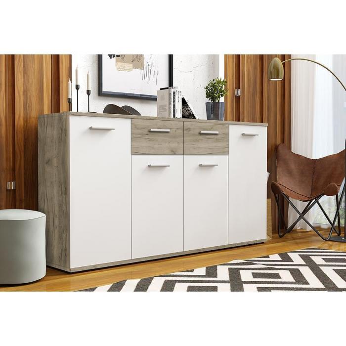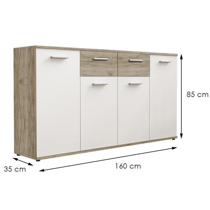 Komoda Jacky wpasuje się w każdą przestrzeń. Posiada 4 zamykane szafki oraz 2 szuflady, które pozwolą na odpowiednie zagospodarowanie. Jacky doskonale odnajdzie się w każdym pomieszczeniu, również w jadalni czy salonie.
