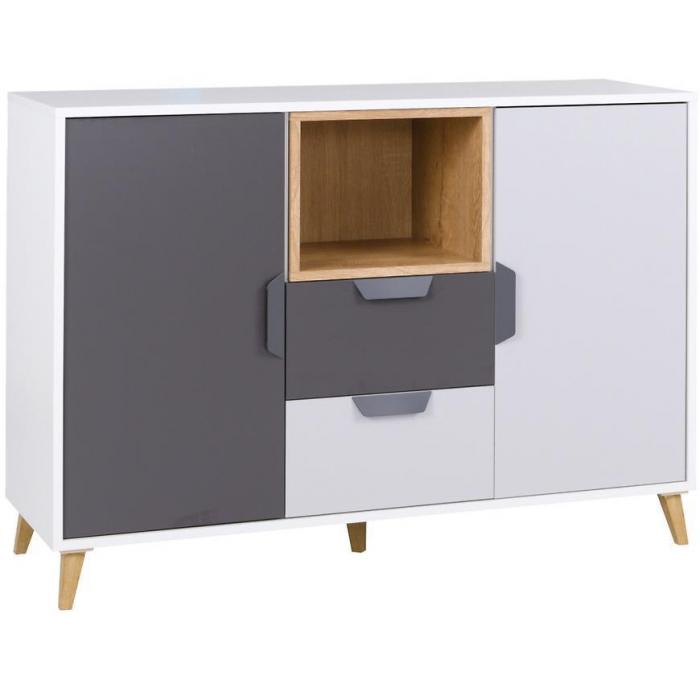 Obrazek Komoda Joker 9 Biały/Grafit/Szary/Dąb Lefkas