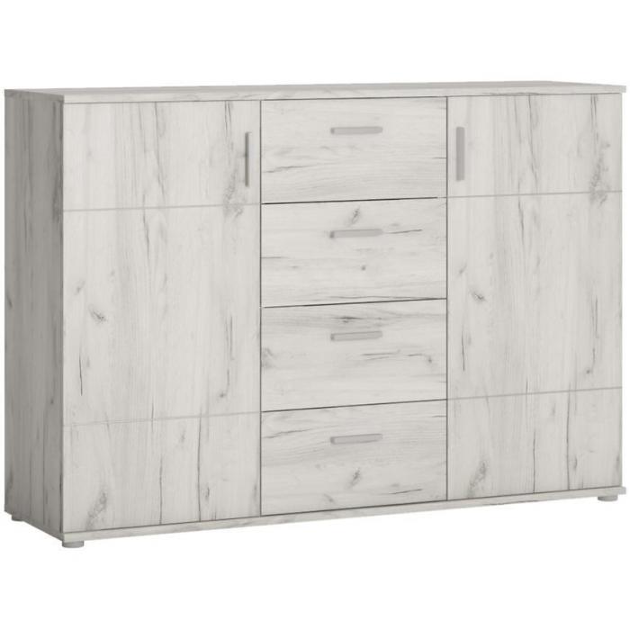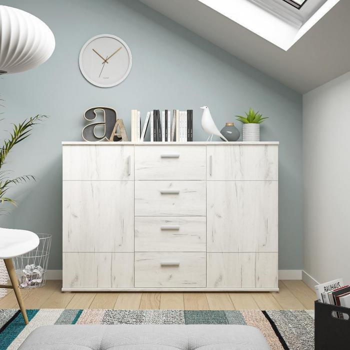 Doskonałym wyborem do pokoju dziennego będzie komoda w kolorze dąb craft biały z serii Jonas, materiał wykonania płyta laminowana. Komoda posiada drzwiczki oraz szuflady dzięki czemu ma łatwy dostęp do wnętrza. Komoda stanowiąc wygodne miejsce do przechowywania mniejszych i większych rzeczy. Meble do samodzielnego montażu.