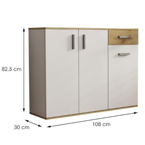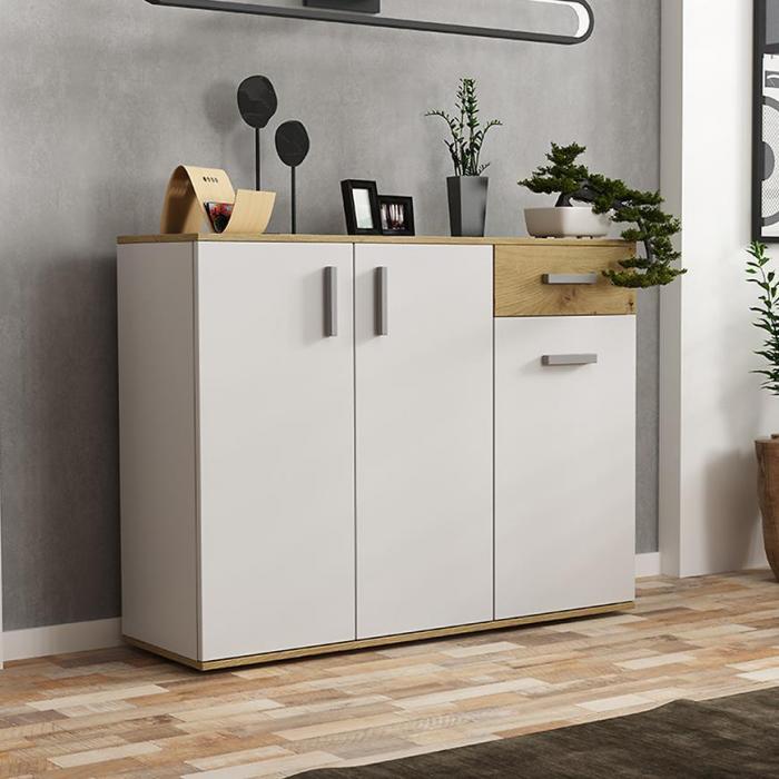 Komoda Justus wpasuje się w każdą przestrzeń. Posiada zamykane szafki oraz 1 szufladę, które pozwolą na odpowiednie zagospodarowanie. Justus doskonale odnajdzie się w każdym pomieszczeniu, również w jadalni czy salonie.